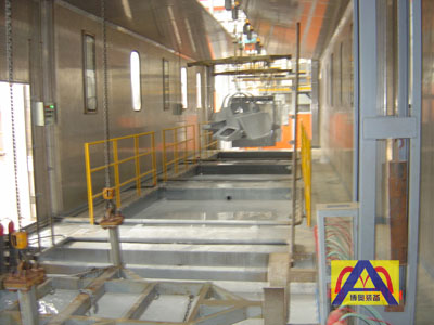 輸送裝置 :包括單軌電葫蘆或其他形式的輸送機(jī),用于將工件間歇性地送入和送出電泳槽。